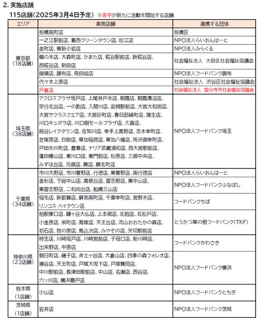 戸倉店での開始により、当社での「フードドライブ」実施店舗は115店舗に拡大します。