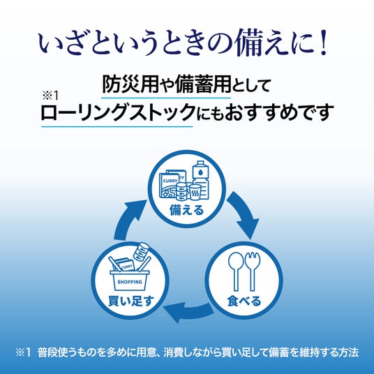 ・長期保存用のローリングストックにも賞味期間は製造から3年。通常のペットボトルに比べて長いため、普段使いはもちろん、防災用や備蓄用のローリングストックにも最適です。