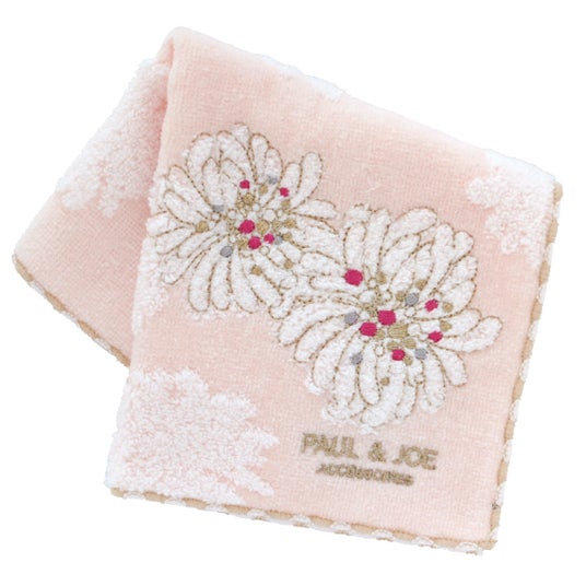 定番のクリザンテームのタオルハンカチ。大胆にあしらった刺繍がとても華やかな一枚。ふんわり柔らか、吸水性の良い素材で、ギフトにも おすすめです。