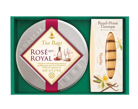 スパークリングワインの香りをイメージしたフレーバード紅茶「ロゼロワイヤル」と優しい味わいの焼き菓子をセットにしました。華やかな香りの紅茶で優雅なティータイムをどうぞ。