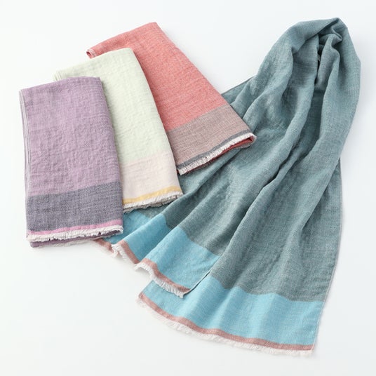 マシュマロのようにふんわりと軽く、やさしい肌触りのガーゼマフラー。細くやわらかな撚りの少ない糸で織り上げた3重ガーゼは保温性・通気性・吸湿・吸水性をバランス良く備えた快適な使い心地。