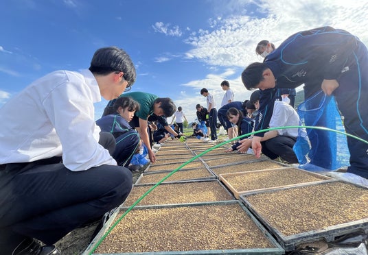 活動が始まったきっかけは「入りたいクラブ活動がない」「だけど、なにか地域に役立つ活動がしたい」そんな想いから、1年生6人が2019年にチームを結成。地域の課題を見つけるために、地元の農家に聞き取り調査を行い、〈休耕田の増加〉〈鳥獣害の増加〉〈後継者不足〉といった課題があることを学びました。それらを解決する第一歩として、休耕田を借りてさまざまな農作物の栽培に挑戦。未経験の作業に四苦八苦しつつも収穫に成功し、さらにはその農産物を使った商品開発にも乗り出しました。翌20年以降も、獣害対策で捕獲された鹿肉を利用した缶詰を開発するなど、さまざまな活動を展開。その活動が評価され、内閣府の「地方創生☆政策アイデアコンテスト」において近畿経済産業局長賞を受賞しました。さらに22年度:「ひょうごSDGsスクールアワード」で最優秀賞など、活動が注目され参加する部員が増えたことで、チームから部へと昇格。以後も地域の課題解決に貢献する活動を進めています。