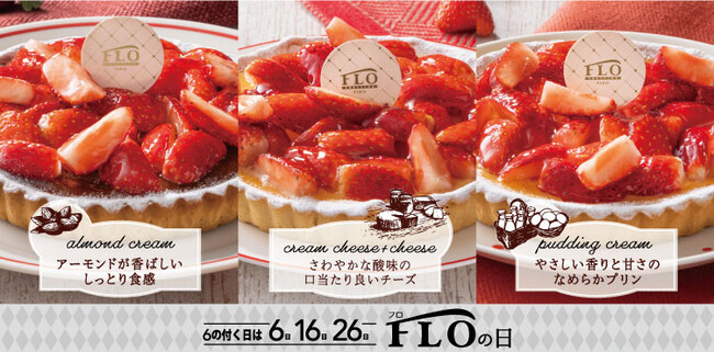 6日、16日、26日とも、旬の苺をたっぷりのせたホールサイズタルトを、FLOの日限定・税込1080円で販売いたします(数量限定)。