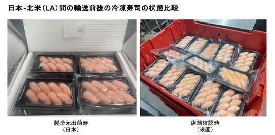 製造元出荷時と店舗到着時の冷凍寿司の状態比較