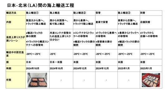 特殊冷凍テクノロジーの製品企画・開発と高品質冷凍商品のプラットフォームを運営するデイブレイク株式会社(本社:東京都品川区、代表取締役:木下昌之)は、アメリカへの冷凍寿司の海上輸送に成功したことをお知らせします。保冷・断熱資材を組み合わせた独自の研究結果により、約3か月間のコールドチェーンを実現。高品質冷凍食品の国際輸送における、大きな一歩を踏み出しました。