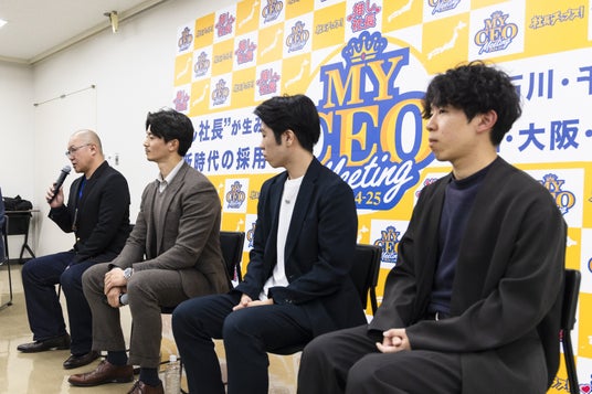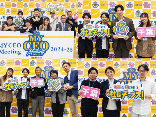 「社長チップス!」や「社長カード」を活用した社長プロデュースを行う、esspride株式会社(所在地:東京都渋谷区、代表取締役CEO:西川世一) は、社長と学生がZ世代を惹きつける社長像について意見交換を行うミーティング「MY CEO Meeting 2024-25」を千葉と愛知で開催しました。昨夏に開催された「MY CEO AWARD 2024 (マイシーイーオーアワード)」(https://shacho-chips.com/feature/feature-16038/)では、Z世代が選ぶ“推し社長=MY CEO” BEST100などが決定し、全国7エリア内No.1に輝いた7名の社長がファイナリストとして選出されました。このMeetingは、ファイナリストの企業所在地である7エリアにて推し社長に選ばれた社長が登壇し、2024年10月から2025年3月までの期間で開催しています。