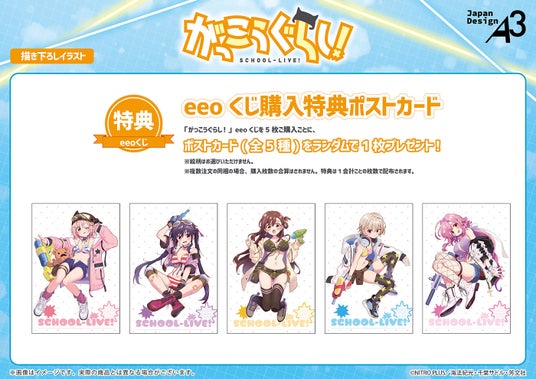 今回発売した『がっこうぐらし!』の「eeoくじ」を1会計で5枚お買い上げごとに、ポストカード(全5種)をランダムで1枚プレゼントします。