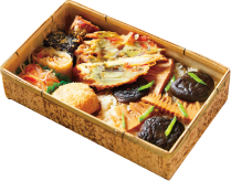 【講評】パッケージがとても良かったです。嘉例川の雰囲気とマッチします。里芋に梅が入った里の味、鳥の煮付けなど初めていただく郷土料理が詰まっていてうれしくなりました。お品書きに一品一品ストーリーが書かれているのがとてもいいですね。旅情に浸りました。デザートのけせん団子、さっぱりとして美味しかったです。霧島に新婚旅行に訪れた龍馬とおりょうさんをイメージしたという解説もにくいなと思いました。(高橋)