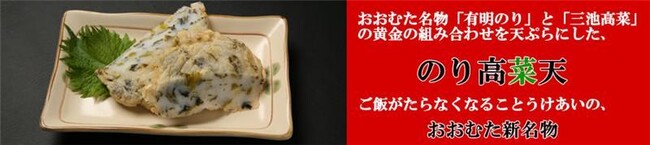 <ポイント>おおむた名物「有明のり」と「三池高菜」の黄金の組み合わせを天ぷらにしたおおむた新名物です。