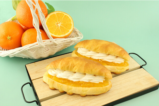 クッキー生地をトッピングしたパンに、みずみずしい味わいのオレンジマーマレードジャムとホイップクリームをサンドしました。甘い生地にさっぱりとしたマーマレードジャムは青空の下で食べたくなるような一品。