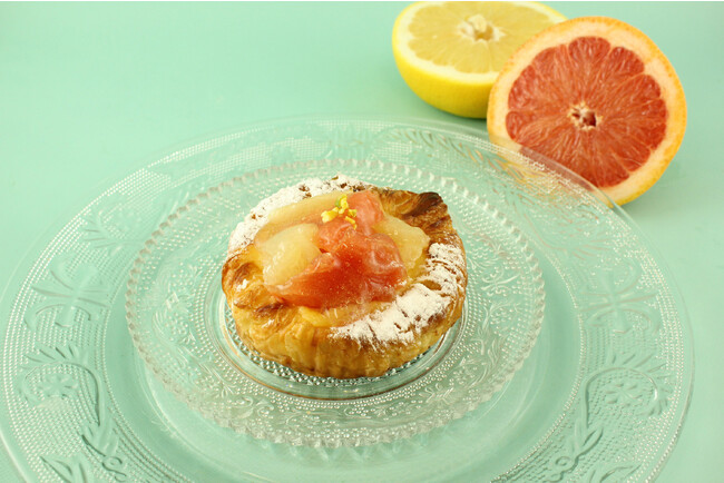 グレープフルーツとルビーグレープフルーツをのせたデニッシュです。