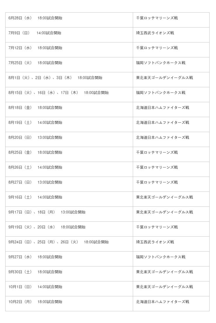 オリックス・バファローズ主催試合 京セラドーム大阪(合計28試合)