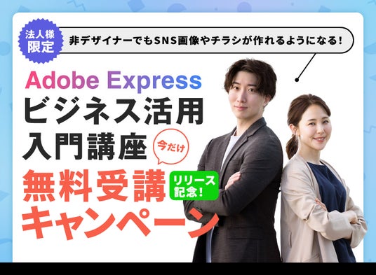 そんなAdobe Expressの使い方が学べるオンライン講座が、今だけ無料。リリースを記念して、おトクなキャンペーンを開催中です!
