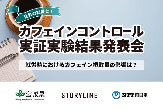 ストーリーライン株式会社(代表取締役社長:岩井 順子、以下ストーリーライン)、宮城県(宮城県知事:村井 嘉浩)、東日本電信電話株式会社 宮城事業部(執行役員宮城事業部長:須藤 博史、 以下NTT東日本)は、2024年12月にカフェインコントロール(※1)の有用性を検証することを目的に実証実験を行いました。