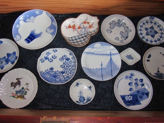 待合に展示している、古伊万里等のお皿の一部になります。古人からのぬくもりが伝わります。