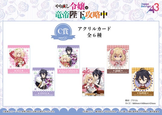 ジルとハディスの幸せな日常を垣間見ることができるイラストを使用したTVアニメ『やり直し令嬢は竜帝陛下を攻略中』の「eeoくじ」。仲睦まじい2人がデザインされた景品をお部屋に飾って、作品の魅力にどっぷり浸ってみてはいかがでしょうか?