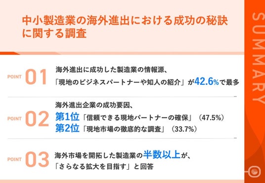 01|海外進出に成功した製造業の情報源、「現地のビジネスパートナーや知人の紹介が42.6%で最多