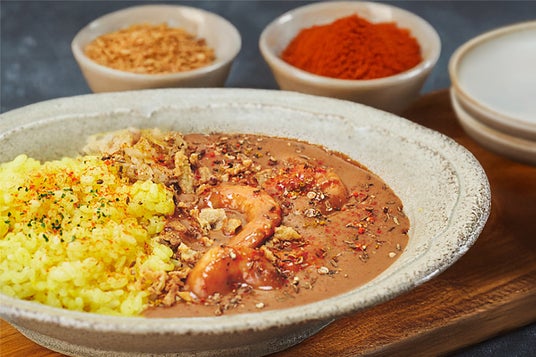コクうま海老カレー隠し味に「ネスカフェ」を使った、海老のうまみたっぷりのカレー。他のカレーとのハーフ&ハーフでの注文も可。