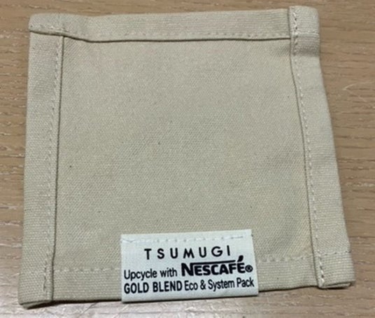 「ネスカフェ ゴールドブレンド エコ&システムパック」の紙パッケージ等を使用したアップサイクル素材で作ったドリンク用コースター