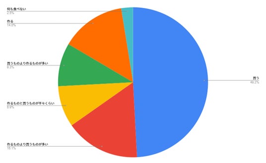 「買う」「作るものより買うものが多い」と回答した”買う派”の意見が、6割以上を占める結果となりました。