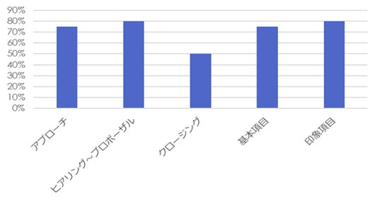実際の調査結果におけるコメントからも、「インバウンド客だと思われたのか、アプローチが遅く、入店してから見定めるために様子を見られているような状況があり居心地が悪かった」「海外からのお客様が接客スペースを塞いでしまっており、自分が接客を受けるような状態になっていなかった」などのように、国内顧客に対しての対応に手が回っていない状態が推察される結果となっています。実際の調査スコアも、すべての接客シーンで1年前からスコアを落としていました(図2)。