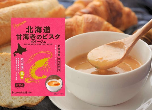 「安心に配慮し身体に優しく」「北海道の食材の旨みを最大限に活かす」という2つのポリシーを軸に開発した同商品は、希少な北海道産甘海老を贅沢に “頭から丸ごと” 使用することで濃厚な旨味を凝縮しています。