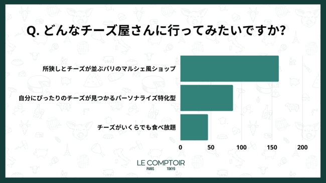 チーズ屋さんというとどんなイメージをもつでしょうか。本場フランスのチーズショップやマルシェ(市場)では、種類の豊富さやチーズまるまる一個の大きさに圧倒され、味見しながら自分らしい、食べるシーンにぴったりの一品を見つけることができるスペシャリストとの会話も楽しいひと時。今回のユーザー調査からもわかるように、日本でも、まさにそのような本物のチーズ体験がしたい、という期待値が高いことが窺える結果になりました。