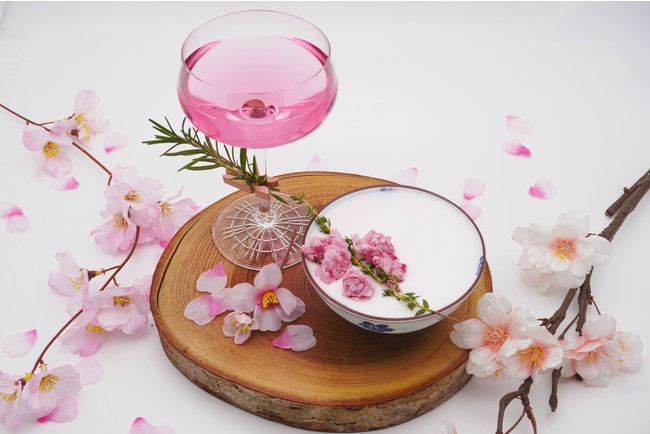もう1つのカクテル「Primavera(プリマヴェーラ)」(写真左)では、桜リキュールとローズマリーシロップにスモークソルトがアクセントとして加えられることにより、それぞれの個性が引き立ち、シンプルな組み合わせながら複雑で奥深い味わいを、桜の風味と共に感じられるカクテルに仕上がっております。