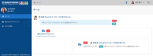 日常業務で活用することを促進するために、『あたりずむ SkillUP VISION』からの問いかけが自動的に送信されます。これにより、本人の自己成長におけるセルフマネージメントをサポートするだけではなく、人事や人財育成担当の方、組織やチームのリーダーの方の社員やメンバーサポート負荷の軽減にもつながります。