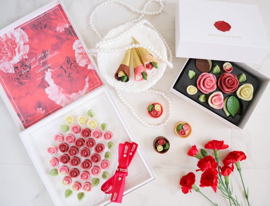 お花屋さんが手がけるチョコレートブランド『MESSAGE de ROSE BY KARENDO』は、「お花でドキドキ・ワクワク」をコンセプトに、店頭に並ぶチョコレートから季節の彩りを感じてもらいたいという想いで、四季折々の限定チョコレートを開発しています。今回は、母の日を象徴するお花”カーネーション”シリーズが新発売。王道のレッド、ピンクを基調とし、華やかで春らしいデザインに仕上げました。