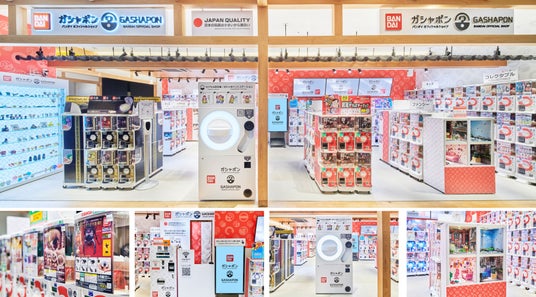 近年カプセルトイ業界では、大型のカプセルトイ専門店が増加し、身近なエンターテインメントとして多くのお客さまに楽しまれています。バンダイのオリジナルのカプセルトイブランドである「ガシャポン(R)」ならではの「ワクワク体験」と「ユニークな商品」をファンの皆さまに向けて直接お届けしたいという思いから、バンダイと大型カプセルトイ専門店の運営ノウハウを持つバンダイナムコアミューズメントが協業で当店舗を出店拡大しています。