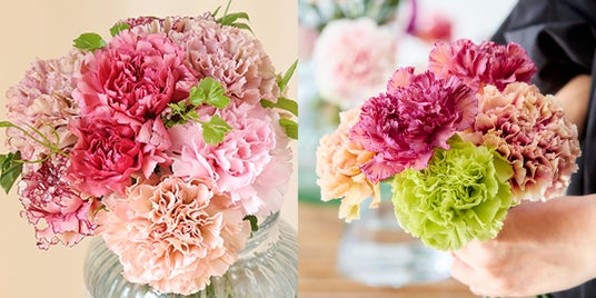 フローリストになった気分で、色とりどりのカーネーションと旬の花の中から好きなものを選んで束ねます。講師が花合わせのコツを優しくレクチャーするので、初心者の方も安心です。