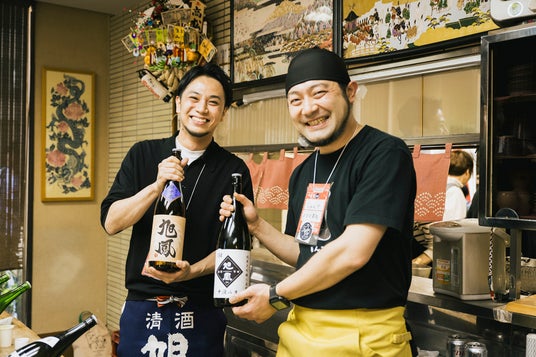 参加者は受付で「オリジナルの利き酒専用お猪口(ちょこ)」を受け取り、自由に飲食店を巡る形式です。各飲食店では、担当する酒蔵が自慢のお酒をずらりと並べ、参加者をお出迎えします(出品のみの場合もあります)。差し出したお猪口に注がれた日本酒を味わいながら、蔵元や造り手と会話や交流ができるのも、このイベントの魅力のひとつです。