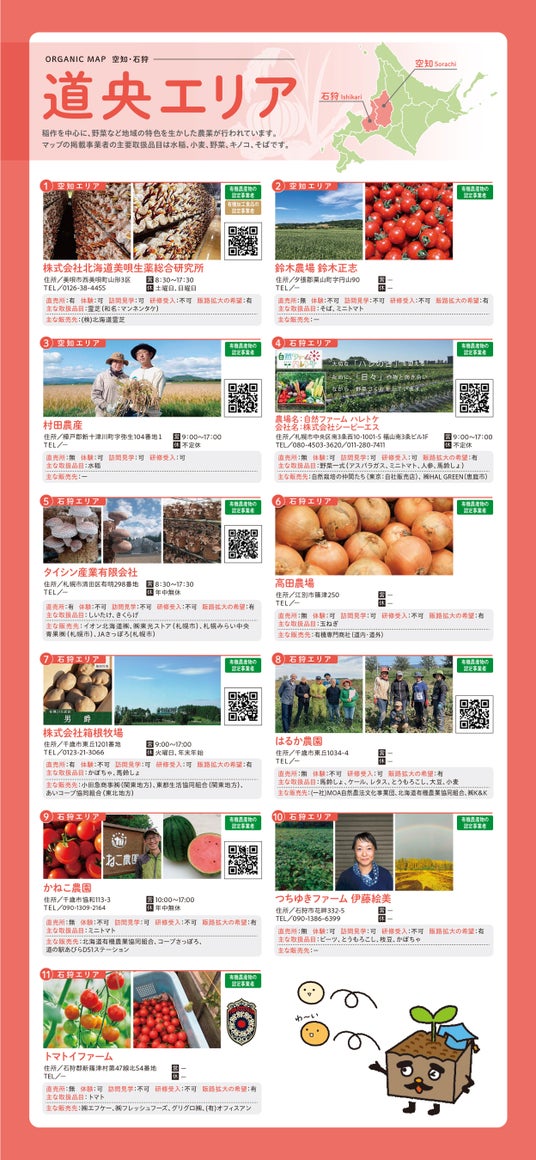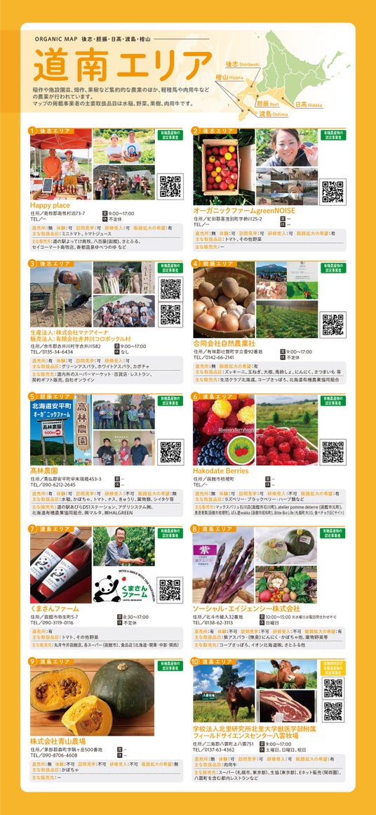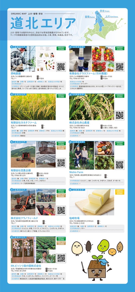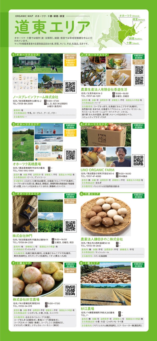 北海道では、「有機農業の取組拡大」や「有機農産物等の販路拡大」、「有機農業への理解醸成」を図るため、北海道内の有機農業を実践する生産者の方々を紹介することを目的として、北海道全体のマップを作成しました。