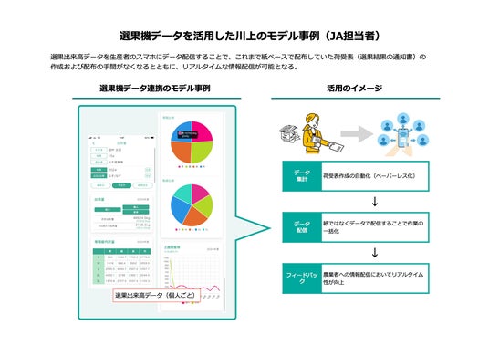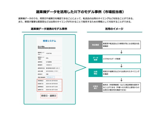 さらに、選果機データの活用によって川上(農業者およびJA担当者)と川下(市場担当者)それぞれの事業者のユースケースを次のとおり創出しました。