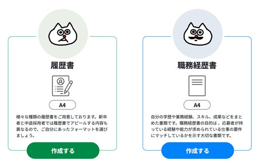 「レジューム」は、無料で利用できる履歴書・職務経歴書・送付状・退職届をスマホで簡単に作成できるシステムです。作成した履歴書は永久保存が可能で、紙の履歴書を無駄に購入する必要はありません。さらに、PDFダウンロードやコンビニ印刷にも対応しているため、用途に応じて柔軟に活用できます。また、保存した履歴書データは、設定により企業の採用担当者に閲覧してもらうことができ、履歴書を随時更新して保存しておくことで、常に最新の情報で自分をアピールできます。