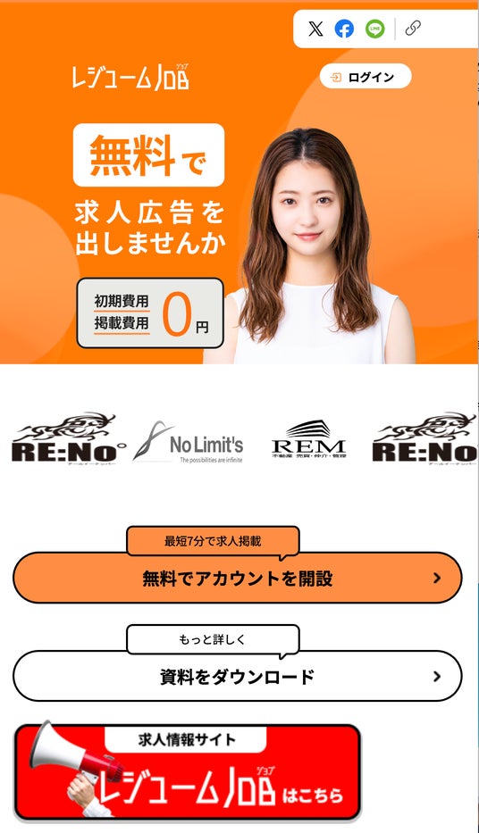 「レジュームJOB」は、無料で利用できる求人情報サイトです。企業側も無料で求人情報を登録する事ができます。