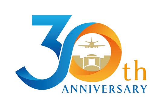 開業30周年を記念して制作したロゴには、ホテルに関わるすべての人々のつながりを大切にしたいという想いを込め、「3」と「0」を一筆書きでデザインしました。また、「0」の中にはホテルと飛び立つ飛行機を描き、空港直結ホテルであることを表現するとともに、世界や未来へ向かって羽ばたくイメ