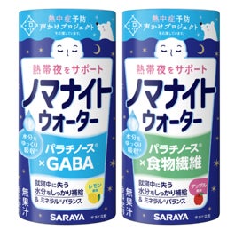 新商品「ノマナイトウォーター」は2種類のフレーバーをご用意。低GI(GI値32~44)糖質「パラチノース(R)」にそれぞれGABA(レモン風味)と食物繊維(アップル風味)を配合し、さらに「羅漢果(ラカンカ)高純度エキス」で自然な甘みを実現。ミネラル分(Na・Ca・Mg・K)も汗の濃度を参考にバランスよく配合しました。水分補給が難しい就寝時や長時間運転の前、のどや体が乾く前に摂取していただくのがおすすめです。