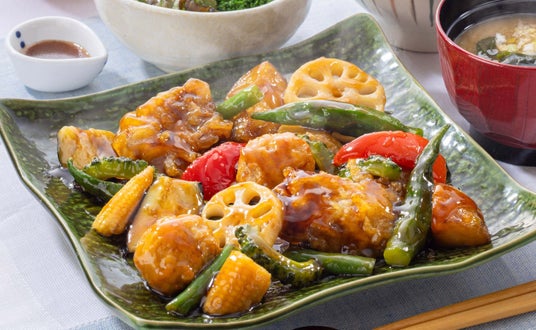 【NEW】季節の野菜と豚と鶏つくねの黒酢あん