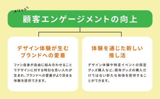 デザイン体験や特定イベントの限定グッズ購入など、既存グッズの購入だけではない新たな価値を提供することができます。