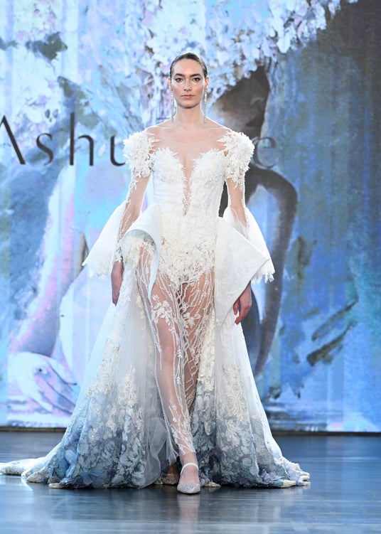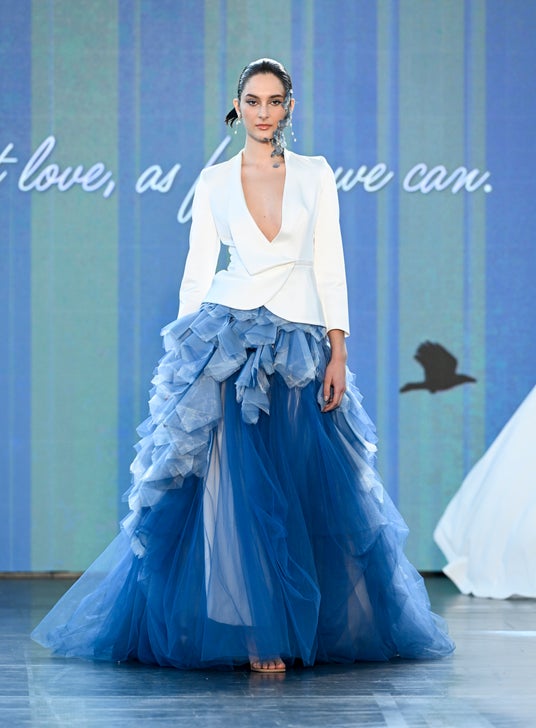アン ミカさんが30年ぶりにランウェイへ ― 多様性を象徴するドレスで登場ショーのハイライトの一つとなったのは、モデル・タレントとして活躍するアン ミカさんの30年ぶりのランウェイ出演。鮮やかなブルーがアクセントとなった純白のドレスを身にまとい、圧倒的な存在感を放ちました。
