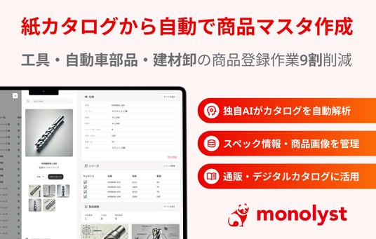 monolyst株式会社(本社:東京都渋谷区、代表取締役:伊関 洋介、以下「当社」)は、工具卸の転記作業をなくす商品情報管理システム 「monolyst(モノリスト)」を2025年4月2日より提供開始することをお知らせします。