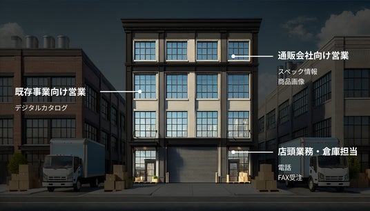 これにより、ビジネスの根幹となる商品情報のデータ化や顧客への展開ができておらず、電話、FAXを通じた受注という負荷の高い従来業務から抜け出せずにいます。