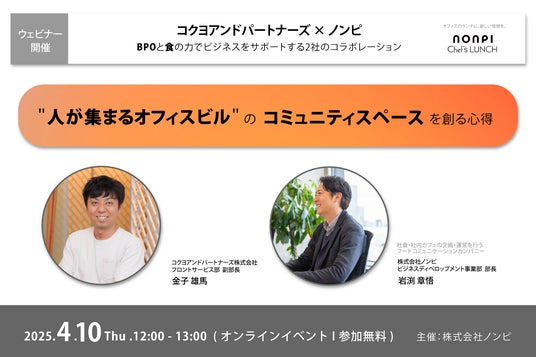 食でココロをつなぐフードコミュニケーションカンパニー、株式会社ノンピ(本社:東京都千代田区、代表取締役社長:上形秀一郎)は、2025年4月10日(木)12時より、ビルオーナー様やビル運営企業様を対象に、コミュニティスペースの創り方についてのウェビナーを開催いたします。