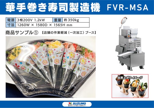 鈴茂器工のブースは、人手不足対策として、オペレーション改善を目的とした機械の導入と売上増を狙った導入後の売り方提案をセットにし機械化ゾーン(ゾーンD 機械07-1 、機械07-2)に出展いたします。