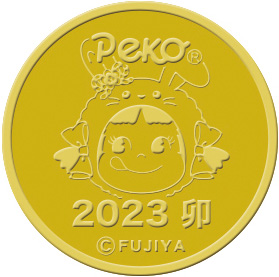 不二家創業112周年を記念し、純金メダルを発売いたします。今回は、2023年の干支『卯』モチーフのかわいらしいペコちゃんがデザインされた、ご予約限定の大変レアな逸品です。