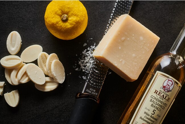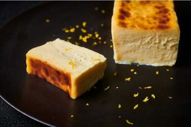 今回のチーズケーキ開発にあたってGeorge ジョージ氏が特にこだわった点は、シンプルだからこその火入れと、材料の配合でした。丁寧に火入れすることで生まれる、なめらかで絶妙な舌触りを追求しました。また、材料には濃厚なチーズ感を演出するパルミジャーノ・レッジャーノと酸味にホワイトバルサミコ酢、石川県能美市で丁寧に作られた農薬・化学肥料不使用の特産物「国造ゆず」をふんだんに使用し、丁寧に焼き上げました。