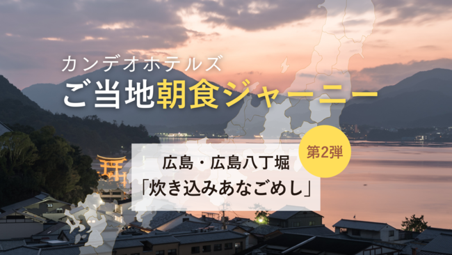 「カンデオご当地朝食ジャーニー」第2弾では4月から5月までの期間限定で全国のカンデオホテルズに「炊き込みあなごめし」が登場し、広島の食文化を感じる特別な朝食体験が叶います。また、本企画終了後もカンデオホテルズ広島八丁堀にてご当地限定メニューとして提供を予定しています。