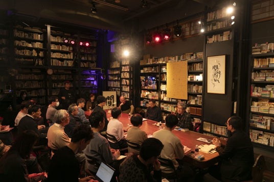 Hyper-Editing Platform [AIDA]の講義風景。会場は編集工学研究所のブックサロンスペース「本楼(ほんろう)」。